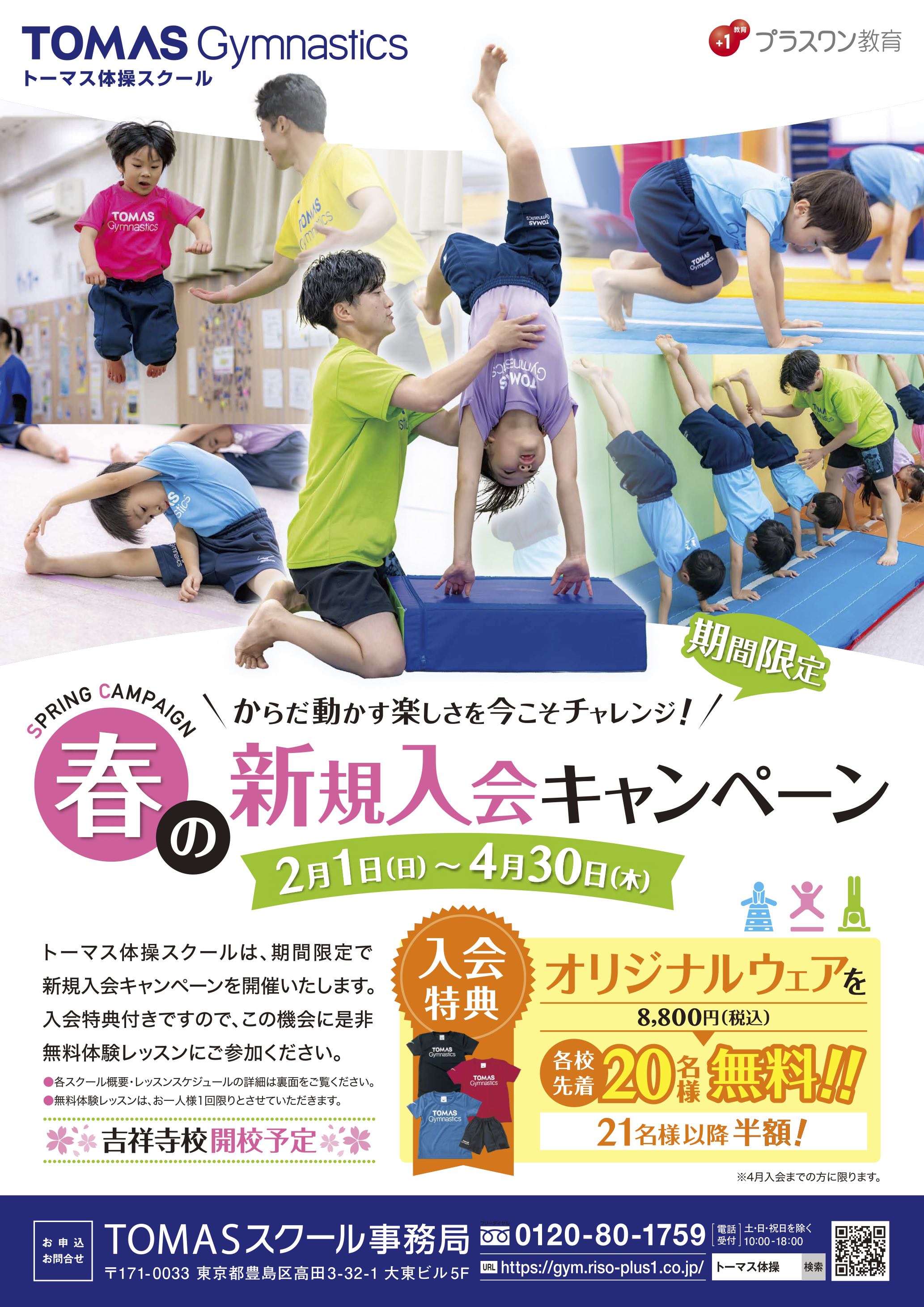 TOMAS体操スクールでは、期間限定で新規入会キャンペーンを開催いたします。